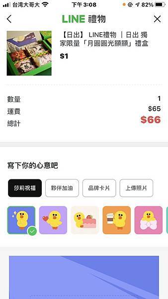 *指定商品販售價格$1元+$65元運費(LINE禮物祝福您66大順!)
